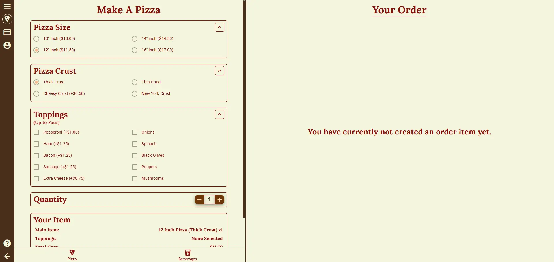 I made a mock UI for a pizza ordering and delivery system using Angular. It is hosted online via GitHub Pages.